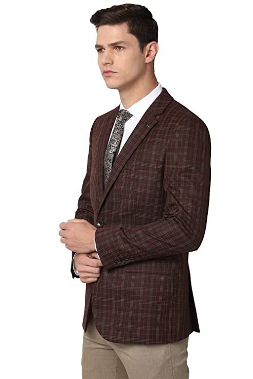 For indisputable elegance wear this Maroon Check blazer from Van Heusen by Van Heusen.